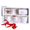 Nu onthullen we de smaak en details! De Crown-mokken, thee en zoetigheden zijn veilig en esthetisch gerangschikt. Hier komt de schoonheid van de set samen met de mogelijkheid om de mokken te personaliseren.