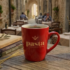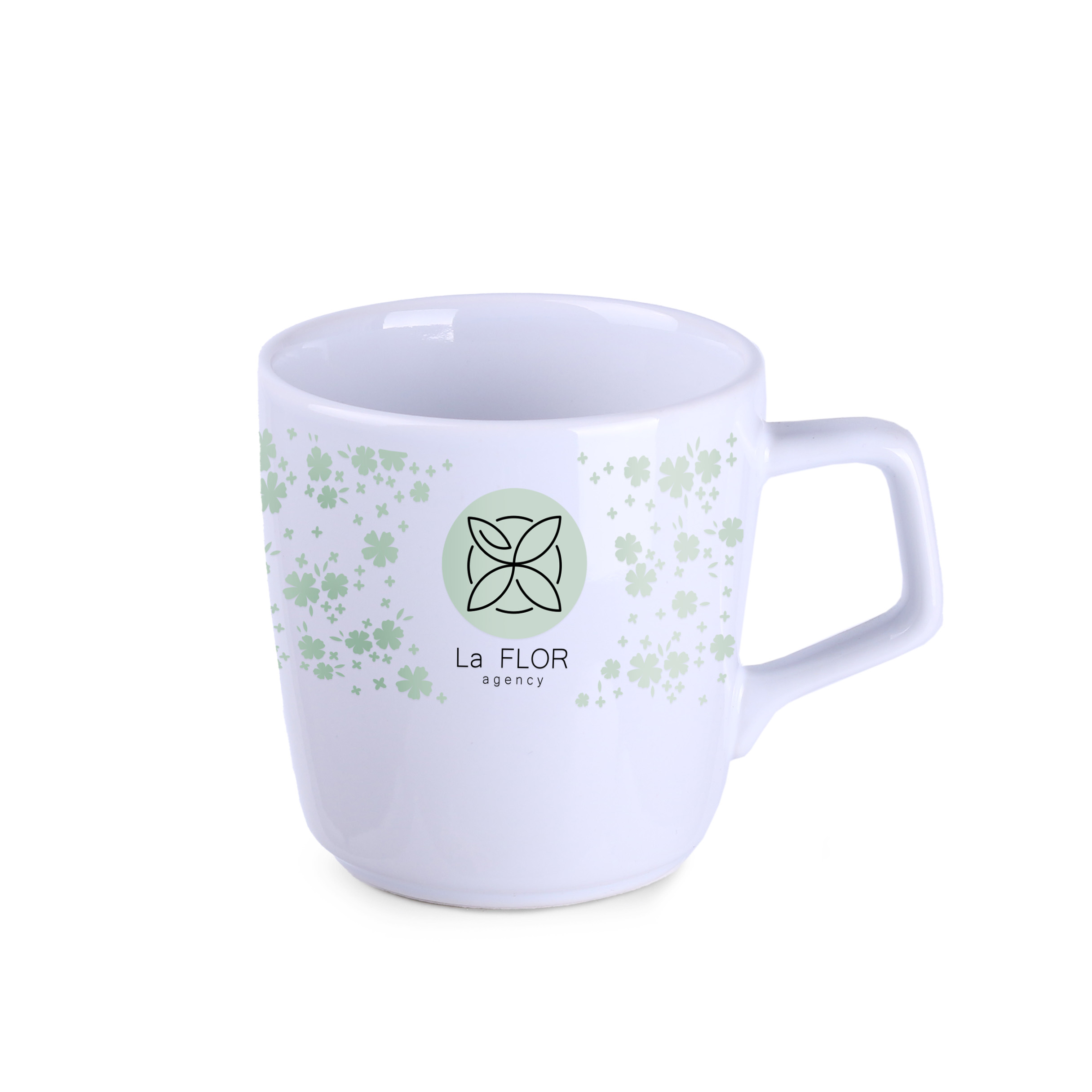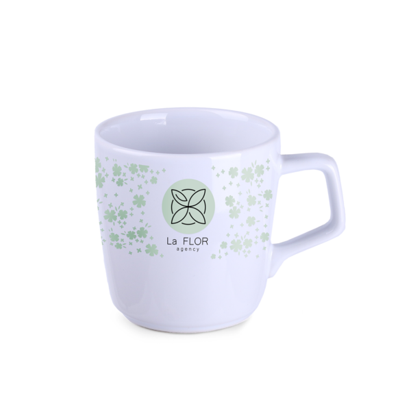 Porseleinen mok met ronde vorm. Heeft een origineel, opvallend handvat en grote mogelijkheden op het gebied van kleuren.
