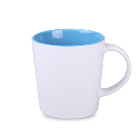 Iconische mok met groot decoratiegebied. Heeft een binnenkant in verschillende modieuze tinten. De grote rechte wanden zullen de aangebrachte bedrukking perfect tentoonstellen.