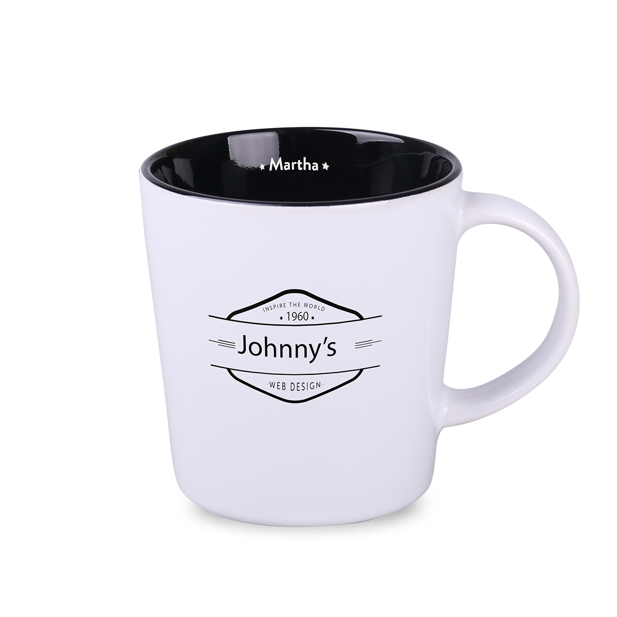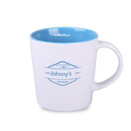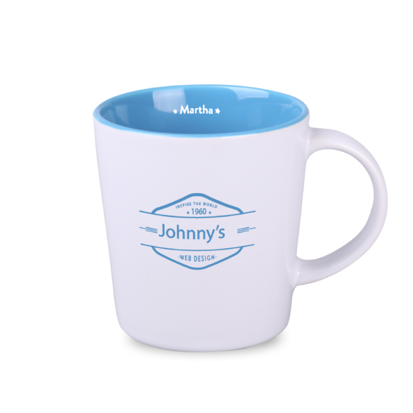 Klassieke mok met grote mogelijkheden op het gebied van customisatie. Heeft een binnenkant in verschillende modieuze tinten. De grote rechte wanden zullen de aangebrachte bedrukking perfect tentoonstellen.