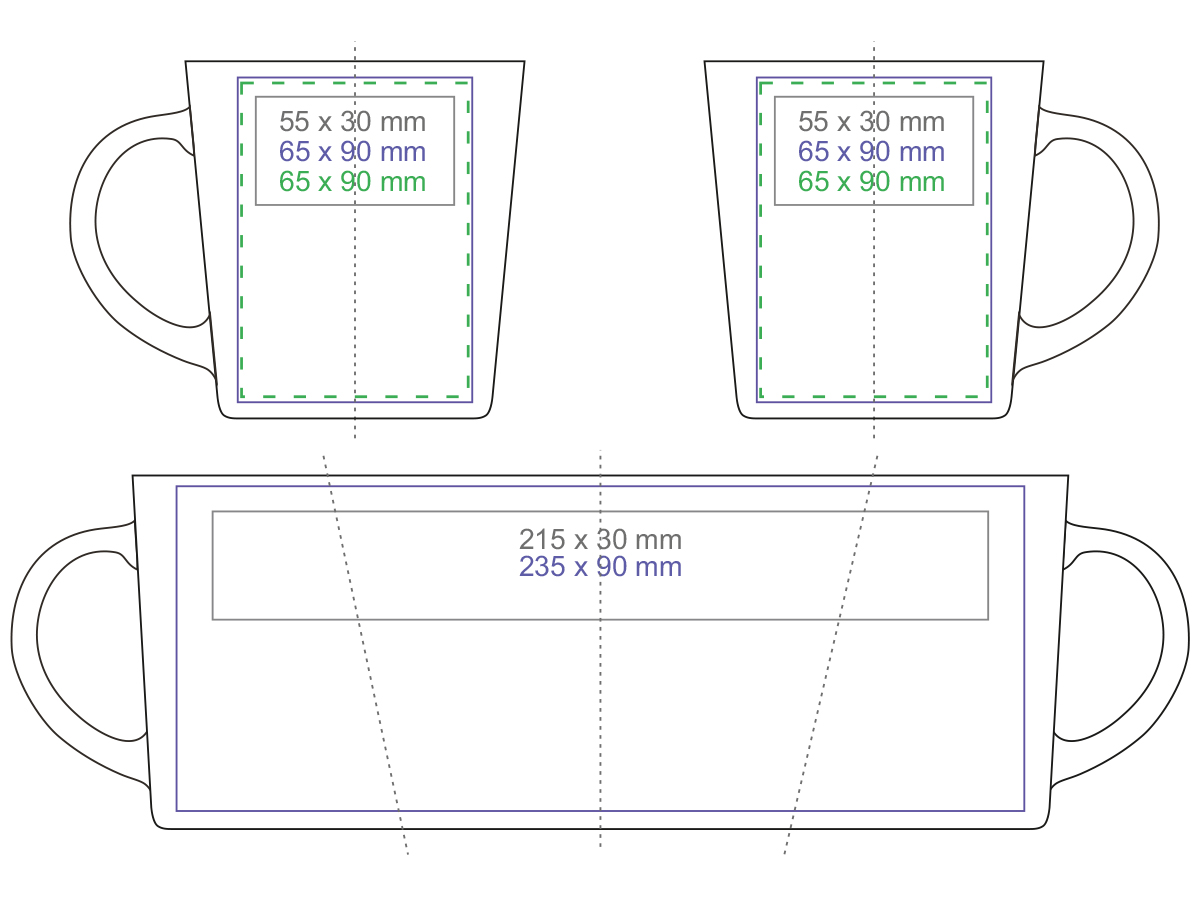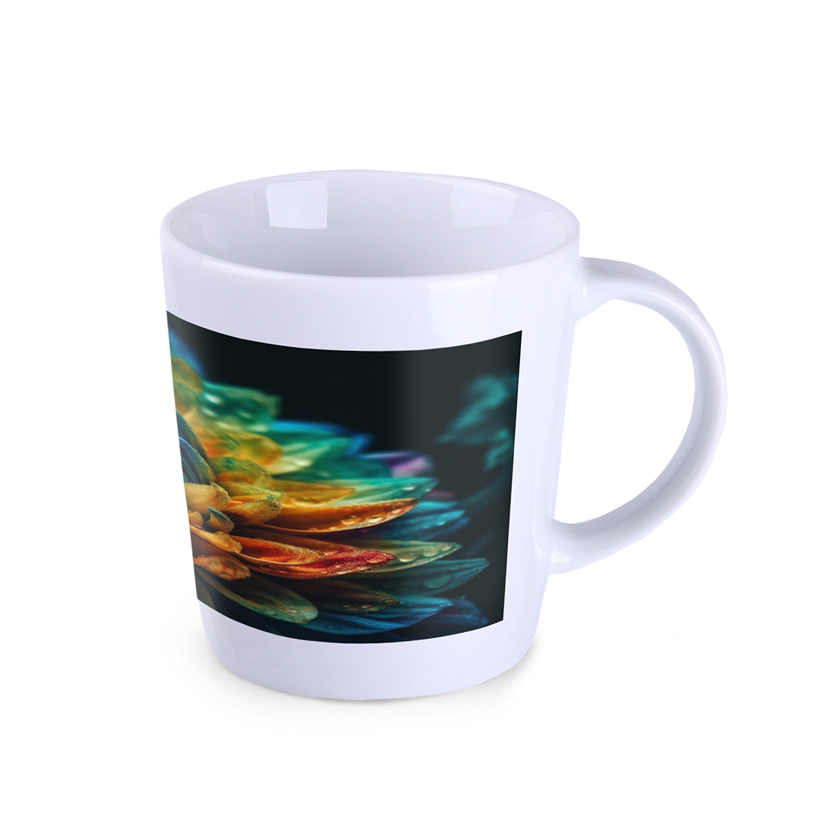Klassieke porseleinen mok met grote mogelijkheden op het gebied van customisatie. De grote rechte wanden zullen de aangebrachte bedrukking perfect tentoonstellen.