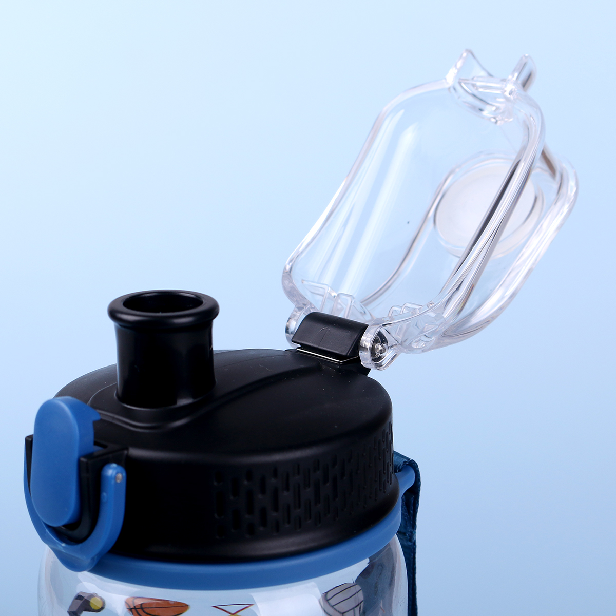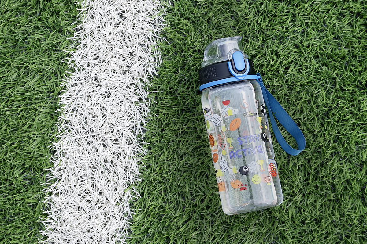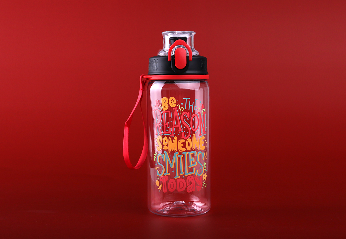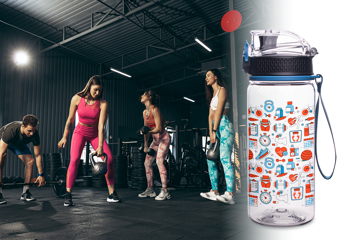 Bidon gemaakt van tritan – een materiaal dat volledig veilig, licht, onbreekbaar is, de smaak van opgeslagen dranken niet verandert, de drank beschermt tegen UV-straling. Dankzij de polsband van materiaal, verkrijgbaar in verschillende kleuropties, is het een ideaal geschenk, niet alleen voor actieve mensen. Bovendien heeft het een handmatige vergrendeling die onbedoeld openen voorkomt.