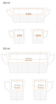 Designer elegante mok gemaakt van hoogwaardig porselein. Heeft een modern oor en uitsteeksels die het een uniek karakter geven. Ideaal voor het aanbrengen van originele ontwerpen.