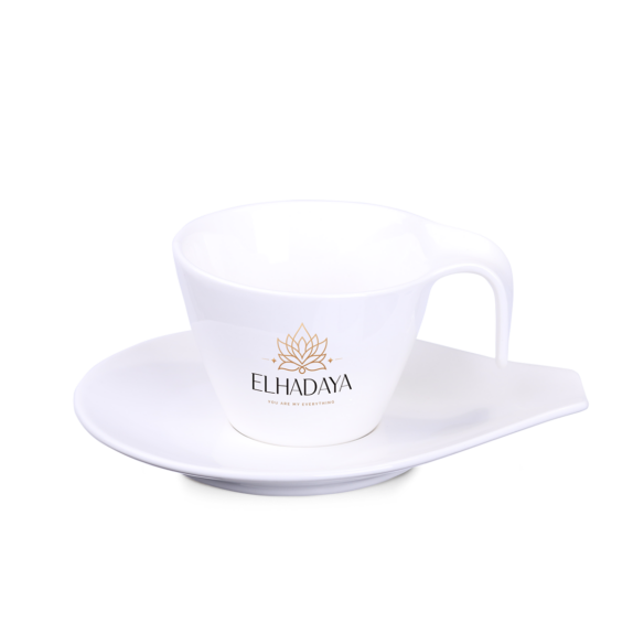 Uniek kopje gemaakt van hoogwaardig porselein. Heeft een fantasierijk oor en een bijpassend schoteltje dat het dragen vergemakkelijkt.