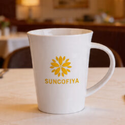 Mok met originele geometrische vormen. Gemaakt van hoogwaardig Royal White porselein. Inhoud perfect aangepast aan koffiemachines.