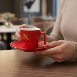 Modern en stijlvol kopje met interessant recht handvat. Verkrijgbaar in kleurvarianten.