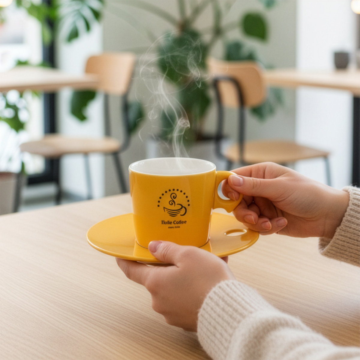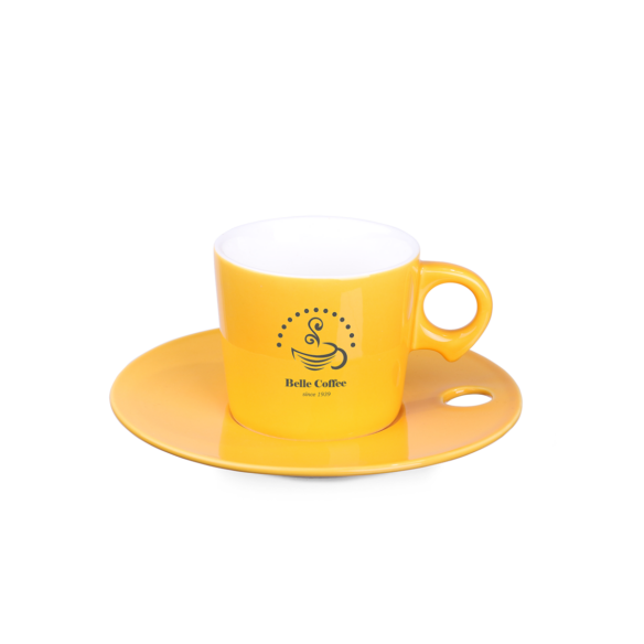 Effectief gekleurd kopje gemaakt van porselein. Heeft een interessante vorm en een designer oor dat correspondeert met het schoteltje.