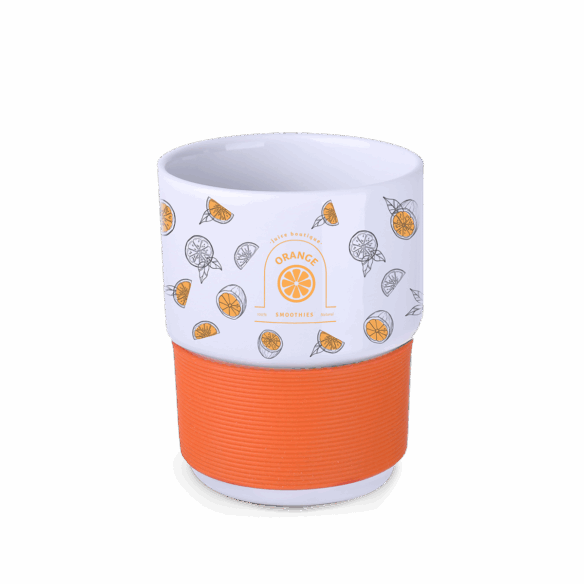 Model in retrostijl met een eenvoudig design, gemaakt van Europees porselein. De vorm maakt stapelen mogelijk. Heeft een flexibele band van 40 mm dik, verkrijgbaar in verschillende kleurvarianten, die de handen beschermt tegen verbranding.