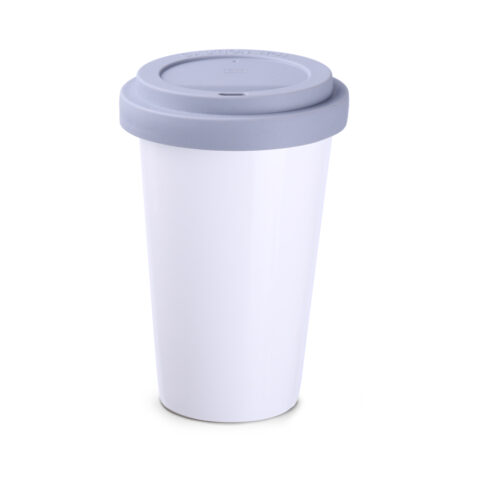 Porseleinen reclamemok met polymeer deksel dat beschermt tegen onbedoeld morsen van de drank. Model gericht op actieve mensen, liefhebbers van uitstapjes en reizen. Dankzij de zeldzame, interne structuur van dubbele porseleinen wanden kenmerkt deze mok zich door een verhoogd niveau van thermische isolatie. Het deksel is verkrijgbaar in verschillende kleuren.