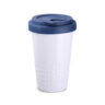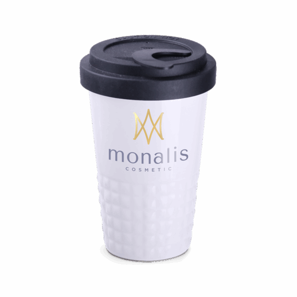Designer mobiele beker gemaakt van porselein. Heeft een karakteristieke afwerking van het onderste deel in de vorm van uitsteeksels. Model gericht op actieve mensen, liefhebbers van uitstapjes en reizen. Dankzij de zeldzame, interne structuur van dubbele porseleinen wanden kenmerkt het zich door een verhoogd niveau van thermische isolatie. Heeft een deksel met een dichte dop verkrijgbaar in verschillende kleuren.