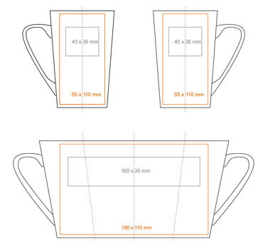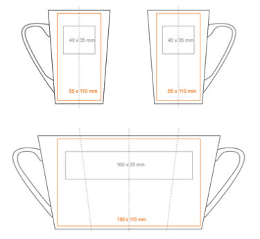 Klassieke mok met trapeziumvorm en hoge wanden. Onderscheidt zich door een elegante grijze matte afwerking. Perfect geschikt voor het aanbrengen van grote decoraties.