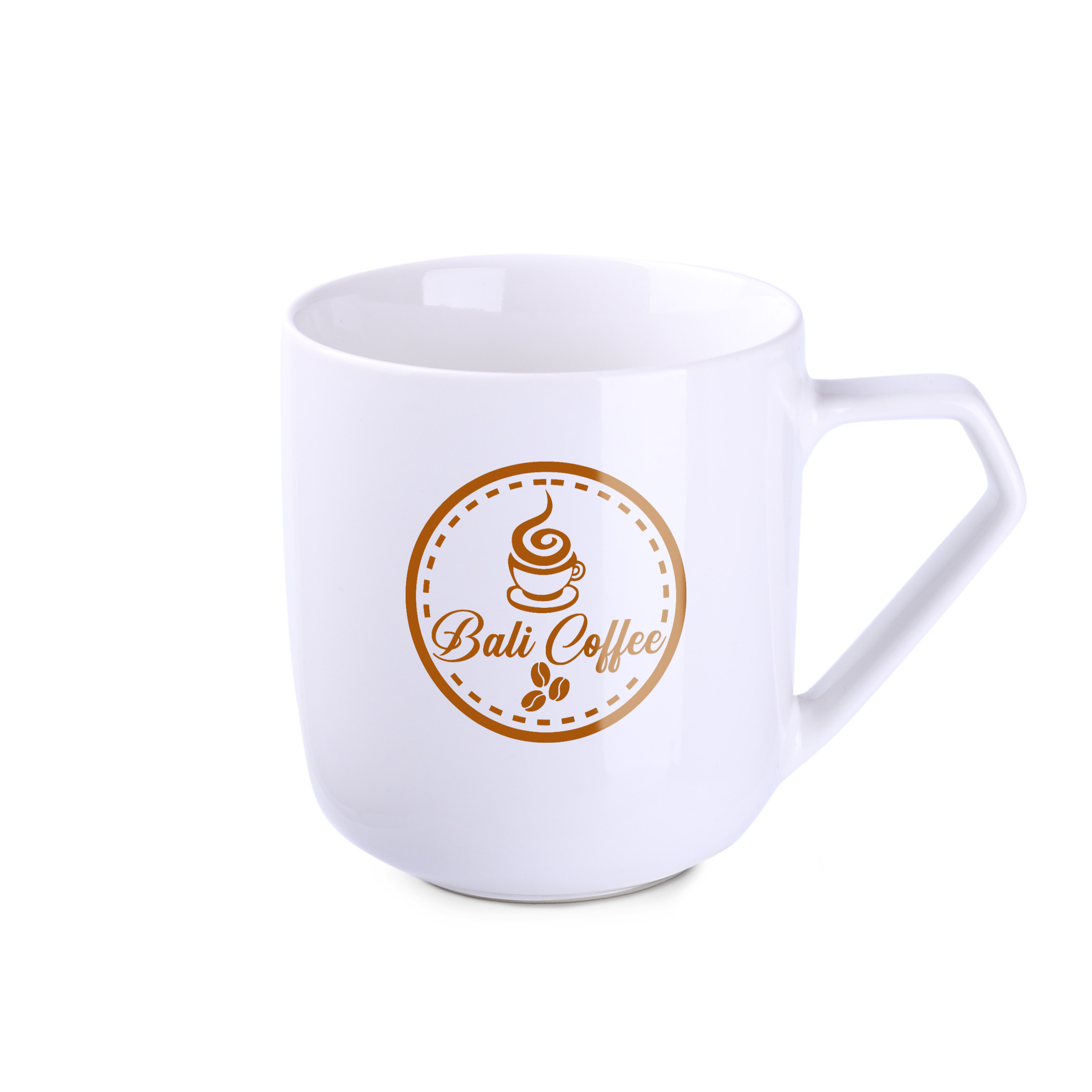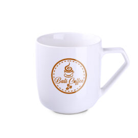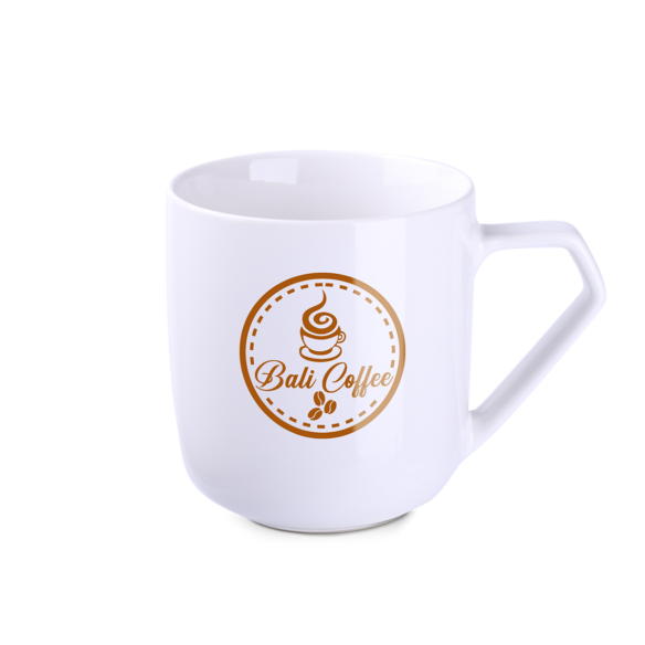 Porseleinen mok met tonvorm en origineel handvat. In combinatie met decoratie zal het het merk op een unieke manier onderscheiden van de concurrentie.