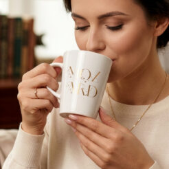 Originele mok gemaakt van hoogwaardig porselein. Onderscheidt zich door een origineel design en een mooi oor.