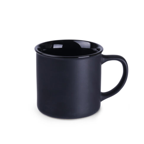 Trendy minimalistische mok met een elegant mat oppervlak in zwarte kleur. Verkrijgbaar in verschillende opties voor gekleurde binnenkant. Biedt grote bedrukkingsmogelijkheden. Zal een uitstekende aanvulling zijn op stijlvolle interieurs.