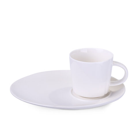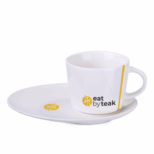 Origineel kopje gemaakt van porselein. Onderscheidt zich door interessante reliëfdrukken aan beide zijden van het oor. Zal de onconventionele boodschap van het merk perfect tentoonstellen.