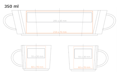 Origineel kopje gemaakt van porselein. Onderscheidt zich door interessante reliëfdrukken aan beide zijden van het oor. Zal de onconventionele boodschap van het merk perfect tentoonstellen.