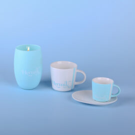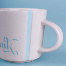 Populair en ergonomisch model gemaakt van porselein. Het onderscheidt zich door interessante reliëfdrukken aan beide zijden van het oor. Verkrijgbaar in drie maten. Een model dat de originaliteit van het gepromote merk benadrukt.