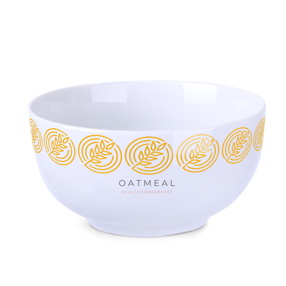 Porseleinen kom met klassieke afgeronde randen. Ideaal voor verschillende soorten ontbijtgranen. Zal de aangebrachte branding perfect tentoonstellen.