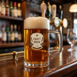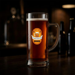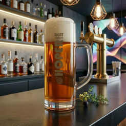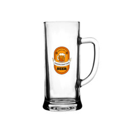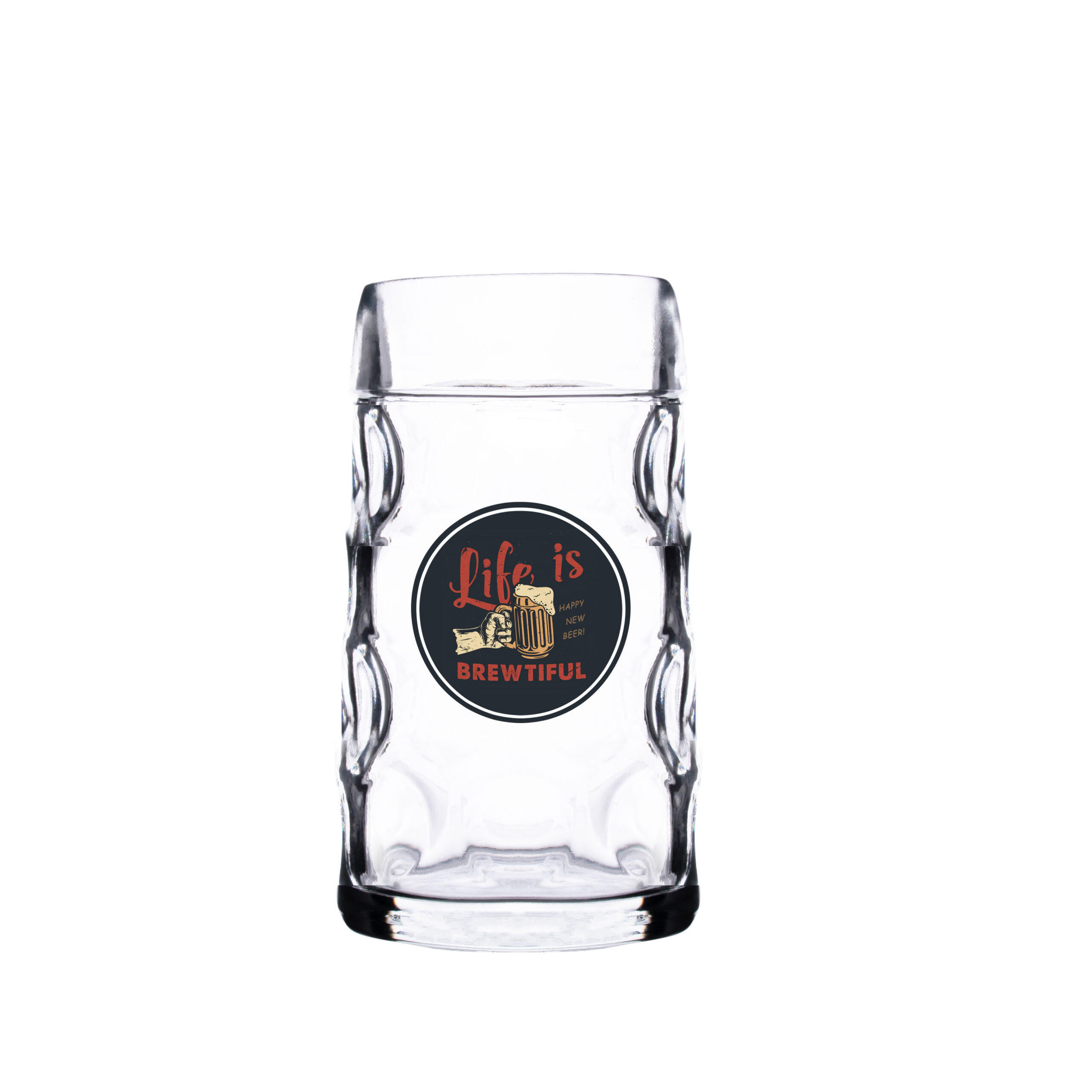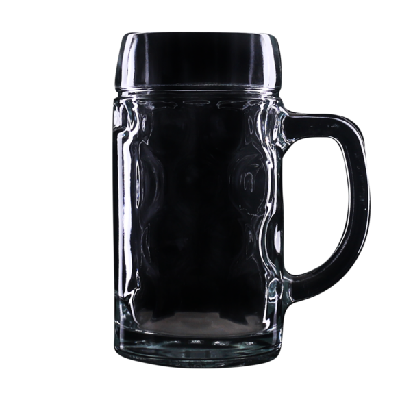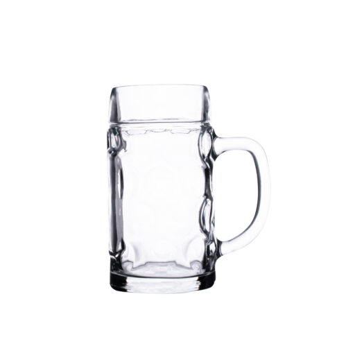 Stevige en handige bierpul met karakteristieke inkepingen op de wanden. De inkepingen geven een driedimensionaal effect aan de gouden drank die erin zit.
