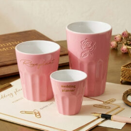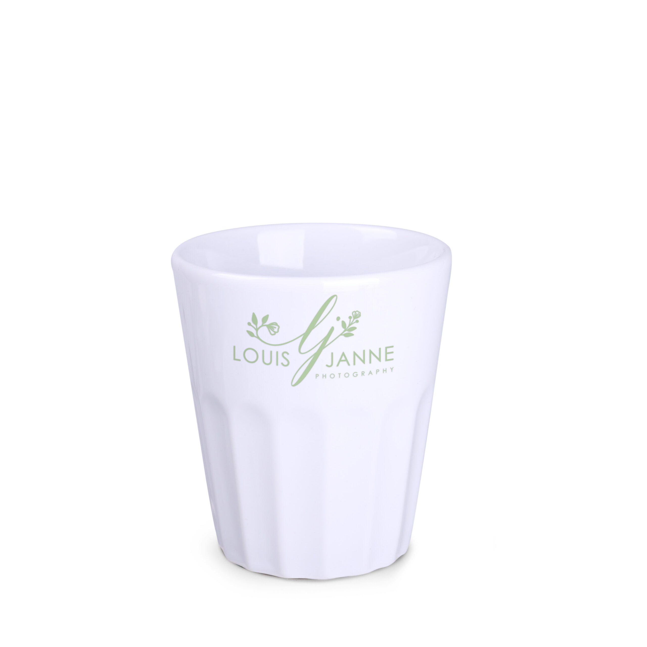 Origineel porseleinen model zonder oor. De golvende structuur van het onderste deel van de mok zorgt ervoor dat deze zeer goed vasthoudt. Verkrijgbaar in drie inhoudsversies. Een model met grote brandingmogelijkheden en stapelbaar.