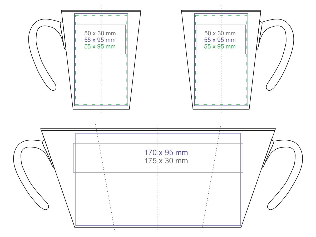 Originele mok met modern “open” oor. Heeft een binnenkant in 4 kleuren naar keuze en een bijpassend oor. De rechte wanden zijn ideaal voor grote bedrukkingen.