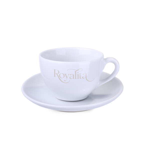 Klassiek kopje met dikke wanden en elegante vorm. Gemaakt van prachtig Europees porselein. Heeft een comfortabel en ergonomisch oor.