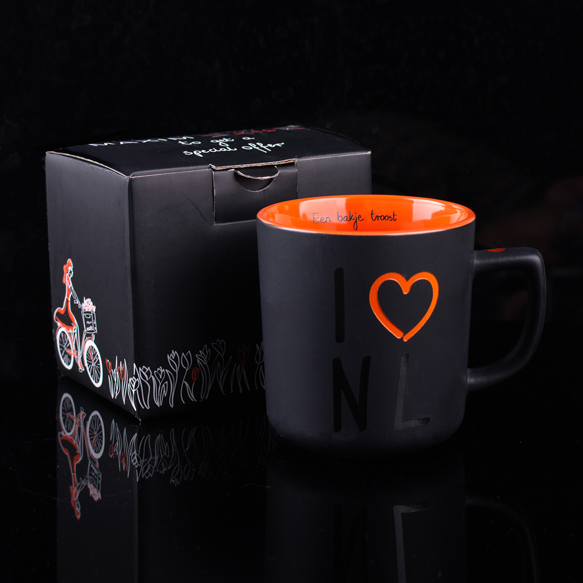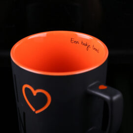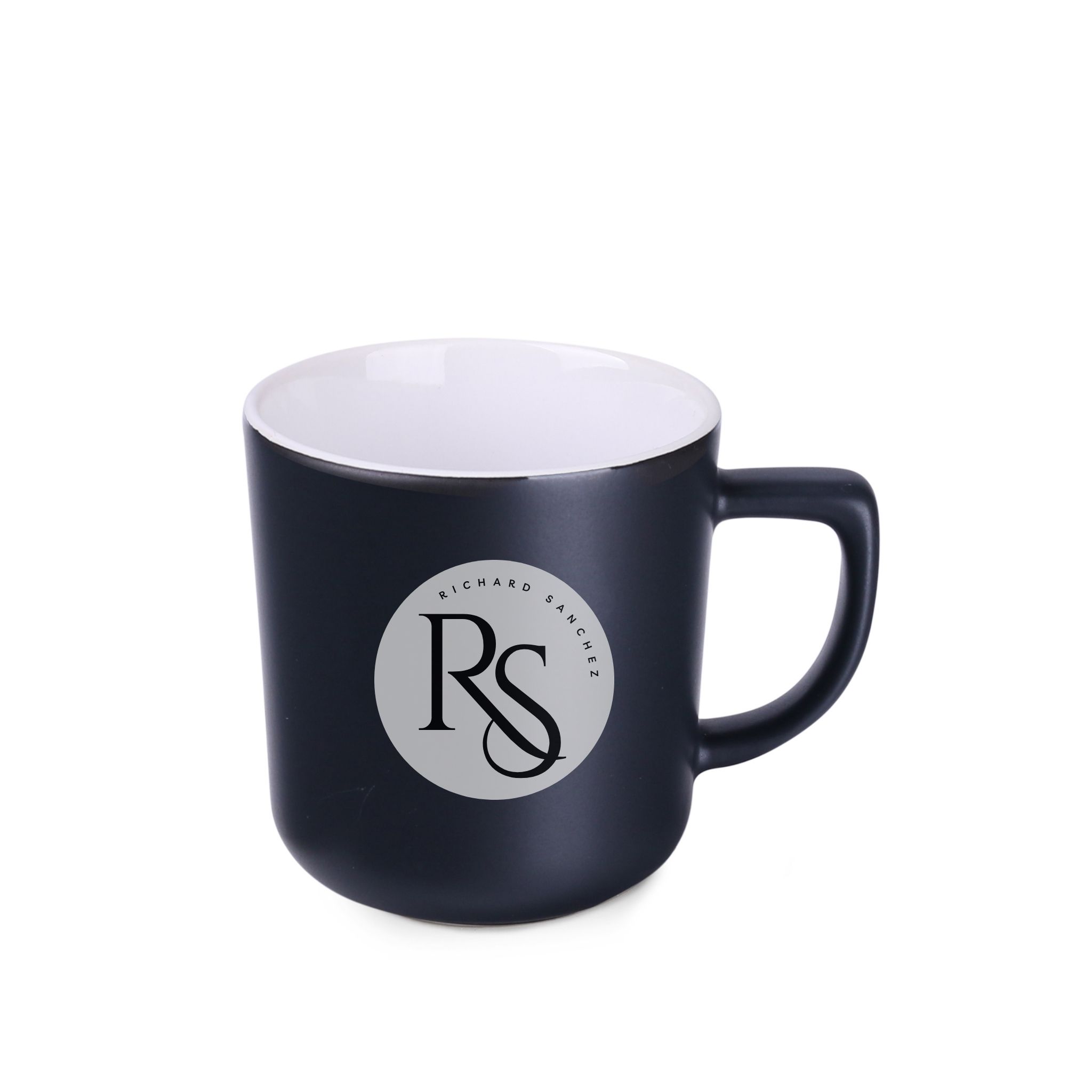 Chique zwarte matte mok met moderne vorm. Biedt grote customisatiemogelijkheden.