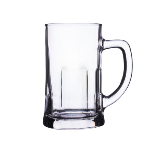 Massieve bierpul met dikke wanden. Heeft een comfortabel handvat en karakteristieke groeven aan de onderkant.