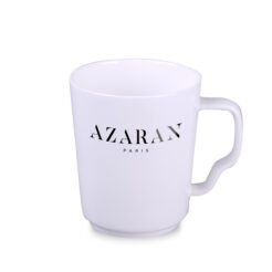 Interessante porseleinen mok met een eenvoudige cilindrische vorm. Heeft een trendy, ergonomisch oor. Geproduceerd in Europa.