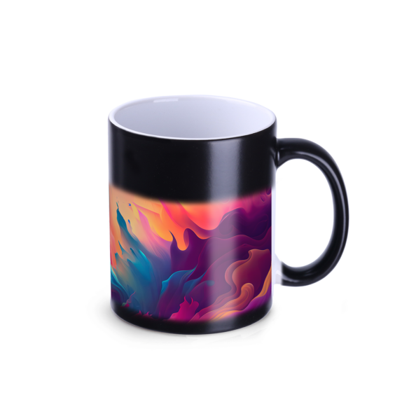 Matte versie van de mok met klassiek design, waarop na het vullen met kokend water op “magische” wijze een bedrukking verschijnt. Bedrukkingen van fotokwaliteit kunnen erop worden aangebracht. Voor fans van verrassende effecten.