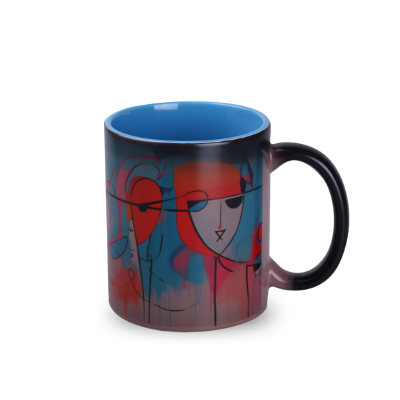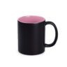 Klassieke cilindrische vorm met een satijnachtig aanvoelend zwart oppervlak. Bekend model mok, waarop onder invloed van hete vloeistof een bedrukking van fotokwaliteit tevoorschijn komt. Heeft binnenkanten in verschillende trendy kleuren naar keuze. Het matte buitenoppervlak “verbergt” de bedrukking nog beter wanneer de mok koud is.